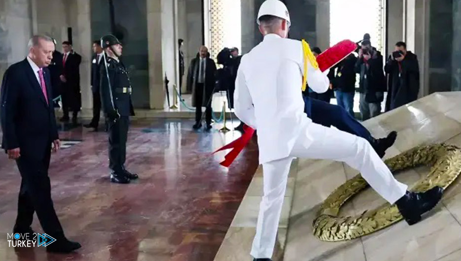 President Erdoğan laid a wreath at the mausoleum, and after a minute of silence, the national anthem was played.